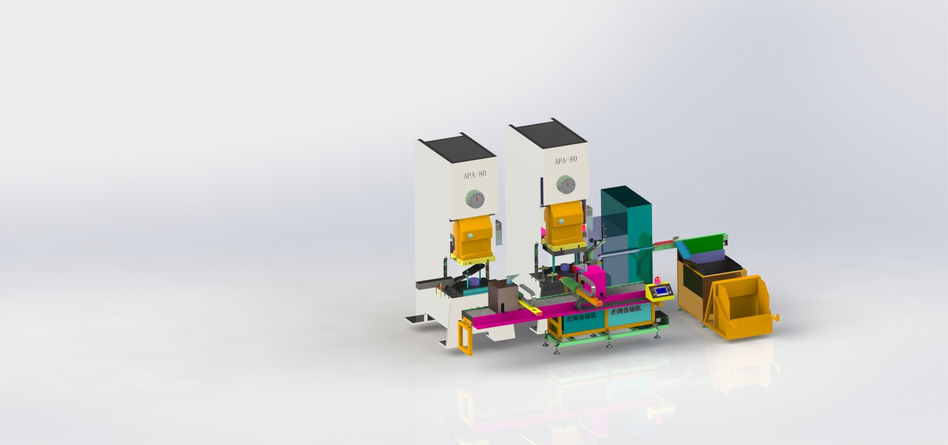 多臺沖床連線紅沖自動化